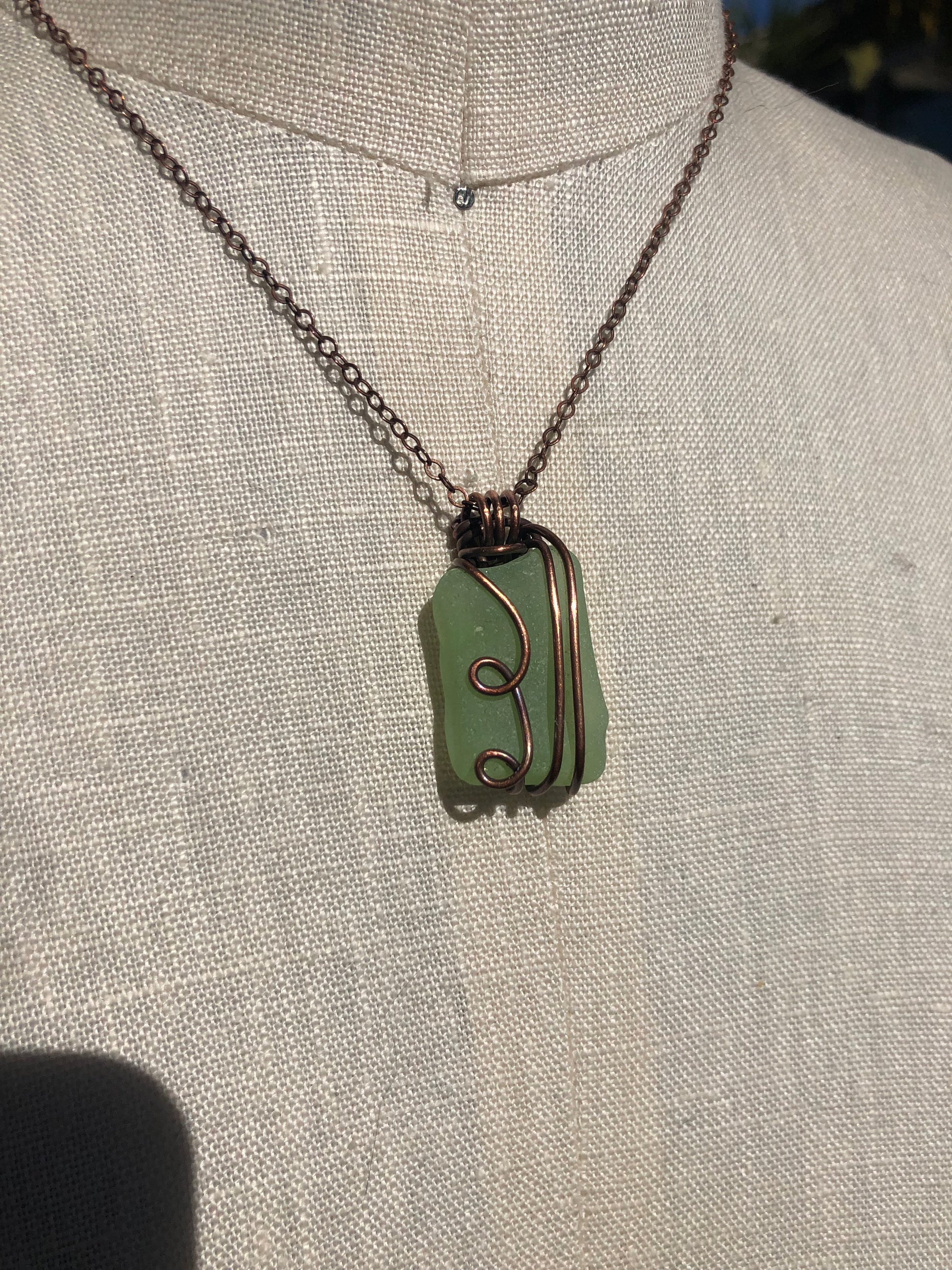 Sea Glass Copper Wire Wrapped Pendant