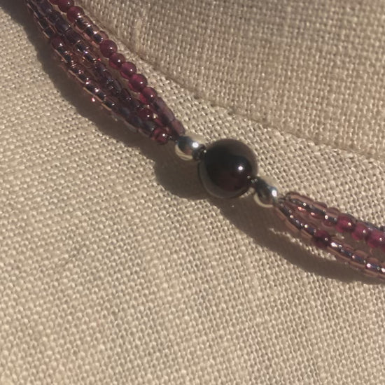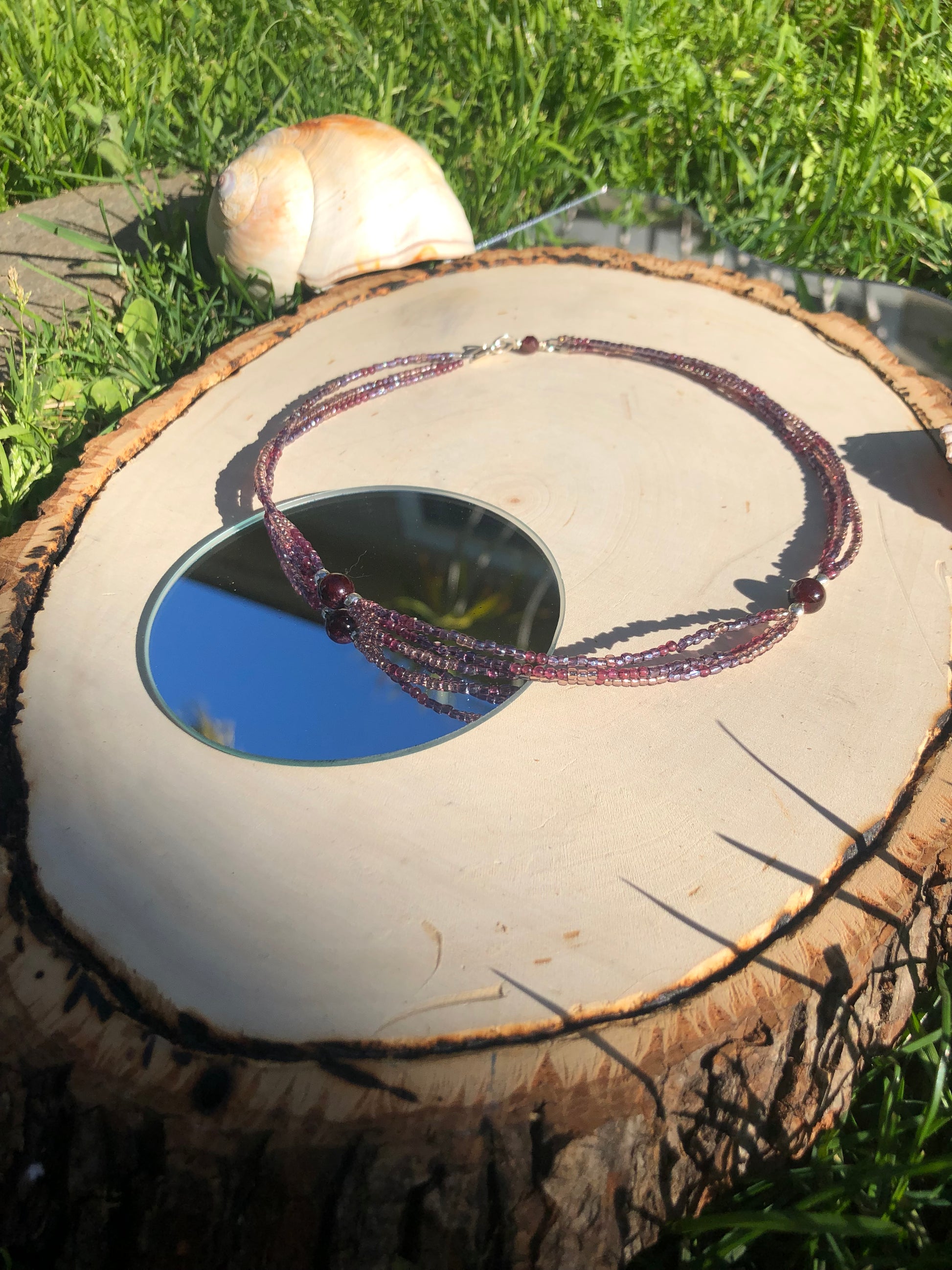 Add this stunning Sterling Silver Necklace with Purple Glass Beads and Garnet to your jewelry collection today! Enjoy exceptional customer service at Angel Of The Sun. This unique piece makes a perfect gift for yourself or a loved one, destined to be cherished for years to come.