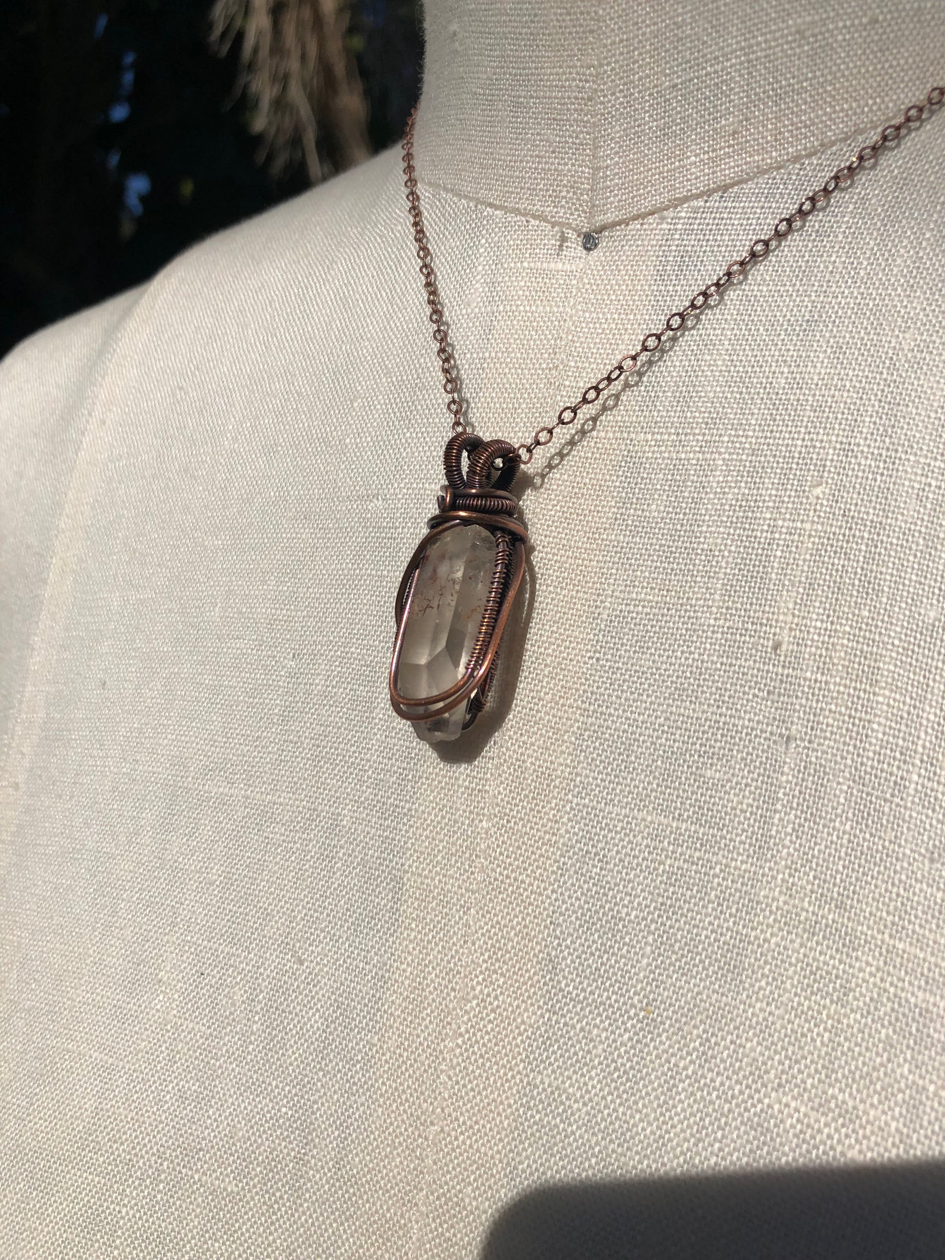 Tangerine Crystal Quartz Point Copper Wire Wrapped Pendant