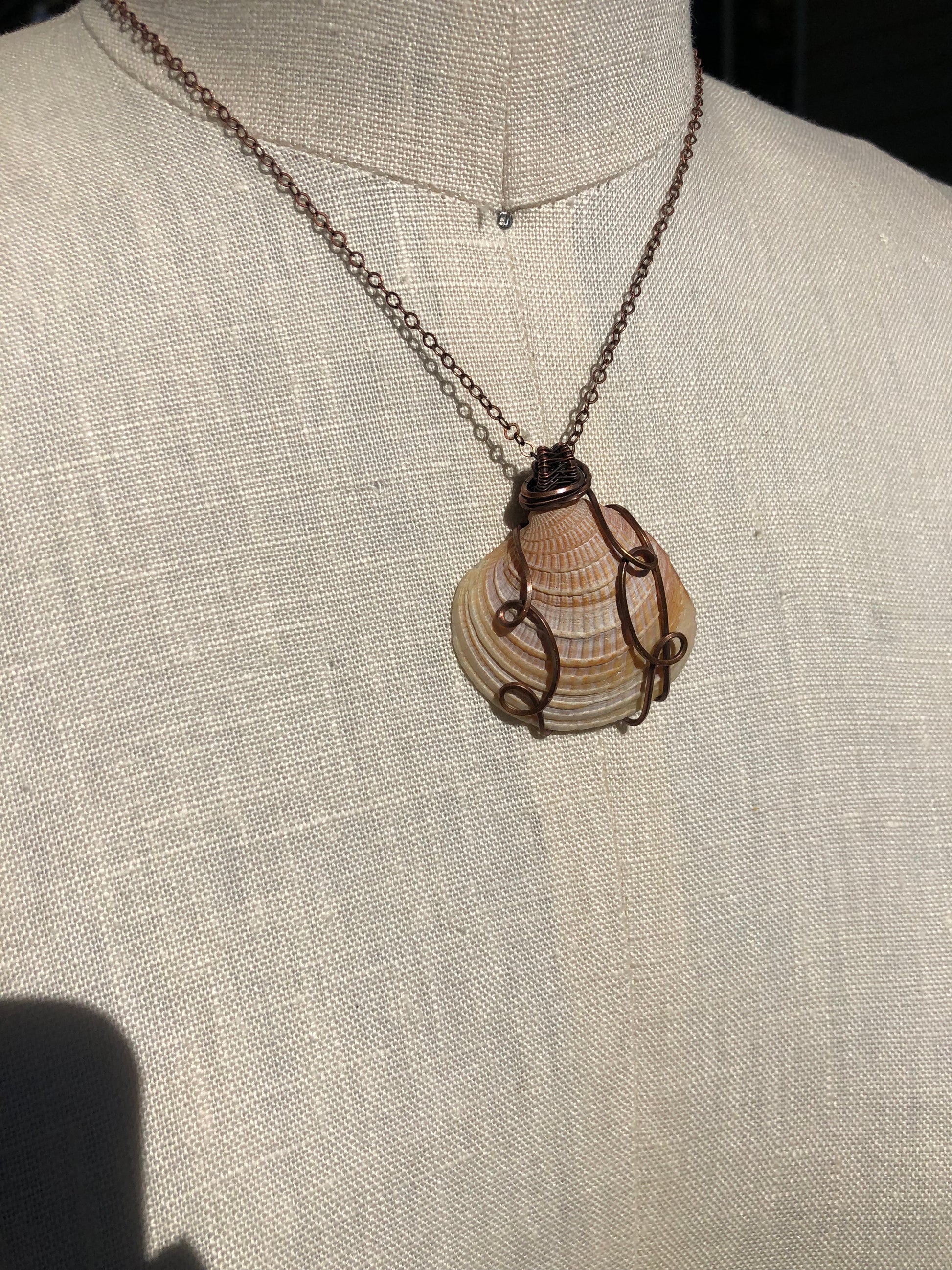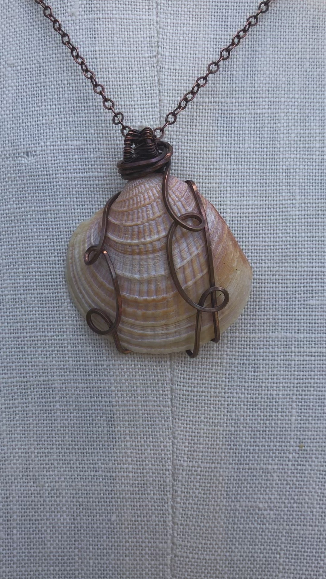 Embrace the beauty of the ocean with our Handcrafted Copper Shell Wire-Wrapped Pendant. This stunning piece features a genuine seashell, elegantly wrapped in durable copper wire, creating a unique accessory that captures the essence of coastal charm.